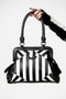 Elevate yer handbag game with this statement must-have; 'Never Trust The Living' is finished in a faux leather body adorned with a block-stripe print, branded bat plaque, multiple storage pockets, and zip closure. Detachable shoulder strap when you need it and of course fully lined. Halloween is every day!